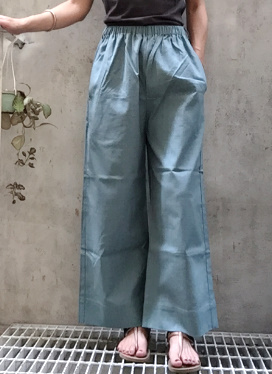 寶琳布衣9分寬褲-湖水藍